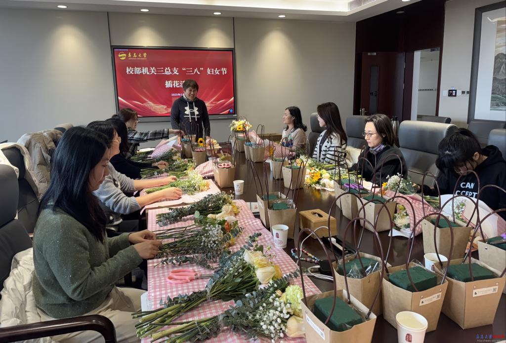 新闻网讯 为丰富广大女职工文化生活,3月5日下午,校部第三党总支工会、妇委会在会议中心304组织开展“三八”妇女节插花活动,为平日忙碌在工作一线的女职工们送上一份温馨的节日祝福。