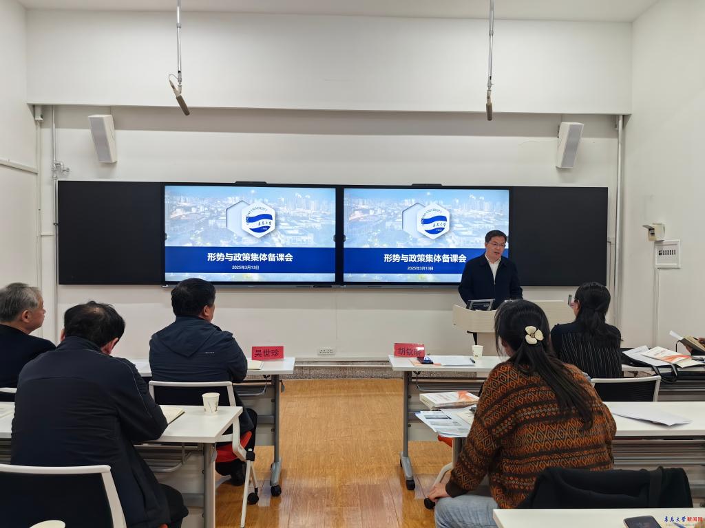 新闻网讯 为深入贯彻落实习近平总书记关于学校思政课建设的重要指示精神,推动学校思政课建设高质量内涵式发展,3月13日下午,学校在笃行楼205会议室举行《形势与政策》课集体备课会。校党委副书记胡钦晓,校党委常委、党委宣传部部长、马克思主义学院院长吴世珍出席会议,校党委正处级组织员王功勇、张启春、修志君、魏强,继续教育学院党委书记张燕以及全体《形势与政策》课授课教师参加会议,会议由马克思主义学院党委书记王传永主持。