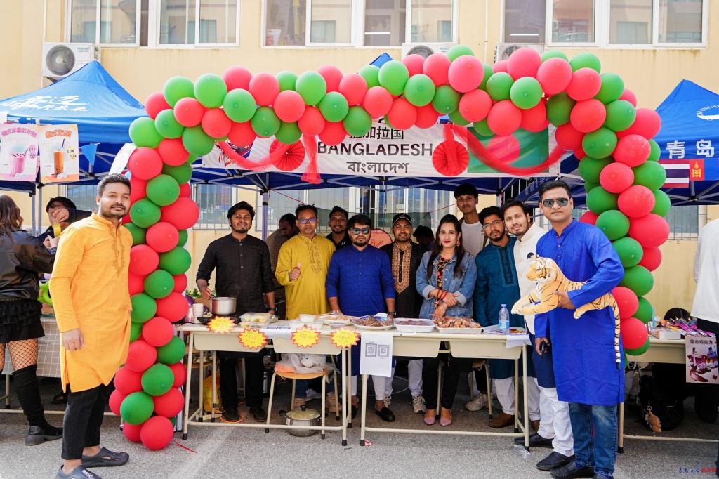 除了精彩的节目展演,活动现场还设置了丰富的文化展示环节。留学生们以各自国家和民族特色为主题,搭建起数十个各具风情的文化展示摊位。泰国、孟加拉、越南等东南亚国家展位上,各色美食琳琅满目,为参与者带来一场舌尖上的环球之旅;世界各国精美传统手工艺品、海娜手绘、特色文创摊位前同样人头攒动,留学生们与齐绣等非遗传承人热情地向观众介绍展品独特的内涵和故事。歌舞表演、文创展示、民俗体验、美食品鉴等多元形式,让敏行楼前广场成为文明交流互鉴、汇聚国际友谊的欢乐舞台,现场掌声与喝彩声此起彼伏。