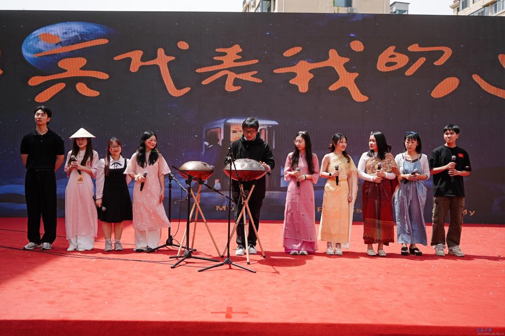 开幕式后的文艺演出精彩纷呈,将活动氛围不断推向高潮。演出分为“五洲雅韵”“艺彩纷呈”“和美与共” 三个篇章。法国留学生小合唱、俄罗斯民谣演唱,以及多国学子合唱经典中文曲目,以歌声传递跨文化情感。在舞蹈表演中,越南北宁歌曲、泰国的特色舞蹈、印度的集体舞蹈,尽显异域风情。此外,中国功夫螳螂拳展和五禽戏养生操刚柔并济,重现中华武术和功法的刚健与智慧。
