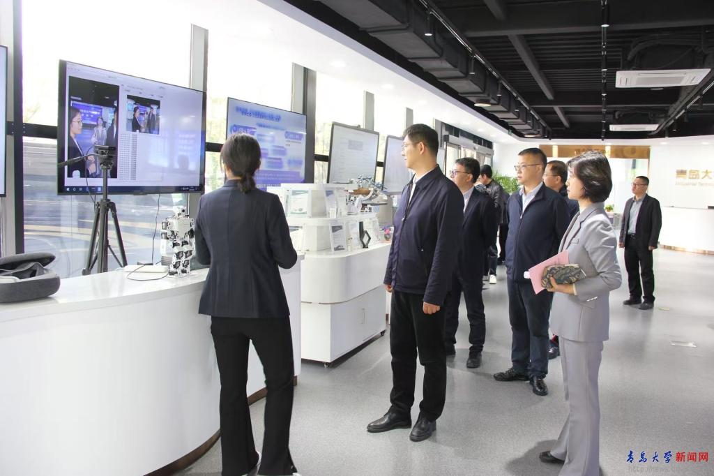 张进一行现场考察了生物多糖纤维成形与生态纺织国家重点实验室、产业技术研究院展厅,双方就进一步整合优势资源、加强校地合作进行了深入交流。