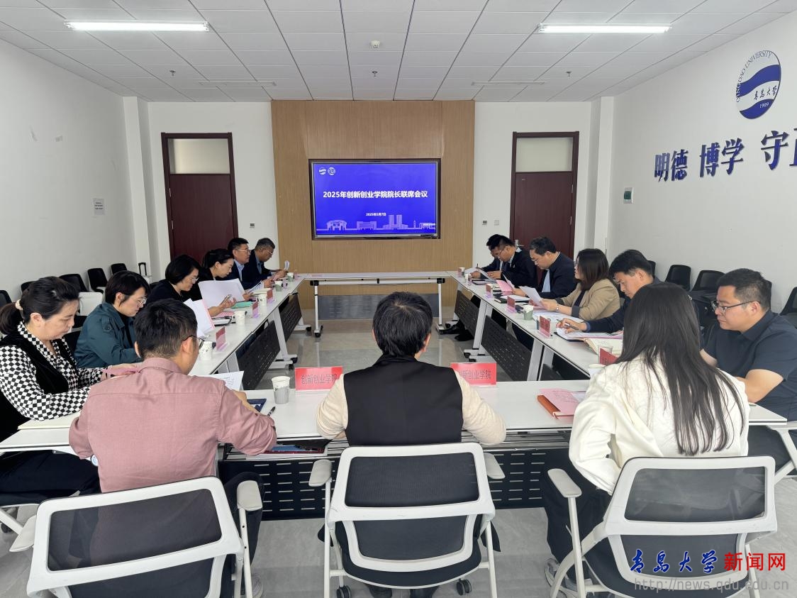 李建波首先对各院长联席单位对创新创业教育工作的支持表示感谢。他结合中国国际大学生创新大赛(以下简称“创新大赛”),对创新创业工作提出要求,一是提高站位,强化担当。要充分认识创新大赛的含义,其是检验新时代育人成效的重要试金石,更是推进教育教学改革的关键抓手。从学生和学校两个层面分别阐述大赛的意义与育人作用,并表示创新大赛是学校综合实力的展示平台,要切实增强全员参与的使命感与责任感。二是明确目标,再创佳绩。充分吸收往年成功经验,开拓创新办赛。有续扩大参赛规模。实施"金种子"培育计划,重点围绕国家战略需求和学科前沿方向,在人工智能、新能源、生命科学等领域布局重点项目,提升项目含金量。三是协同联动,各司其职。建立"领导小组-专项工作组-院系执行组"三级管理体系,实行项目化运作、清单式推进。结合各院长单位职能,提出具体工作要求,力争从各方面全力保证赛事高质高效推进。四是创新宣传,激发动力。开展系列主题宣讲活动、建立师生互动激励机制,营造"人人关注、全员参与"的浓厚氛围。五是严把质量关口,坚守教育初心。建立“三审三查”质量管控机制,形式审查确保合规性、专业评审提升创新性、项目审查把关价值观。六是完善长效机制,促进成果转化。重点建立“赛前培育-赛中孵化-赛后转化”全链条机制,将优秀项目纳入创新创业项目库,推动产学研深度融合,真正实现“以赛促教、以赛促学、以赛促创”的育人目标。