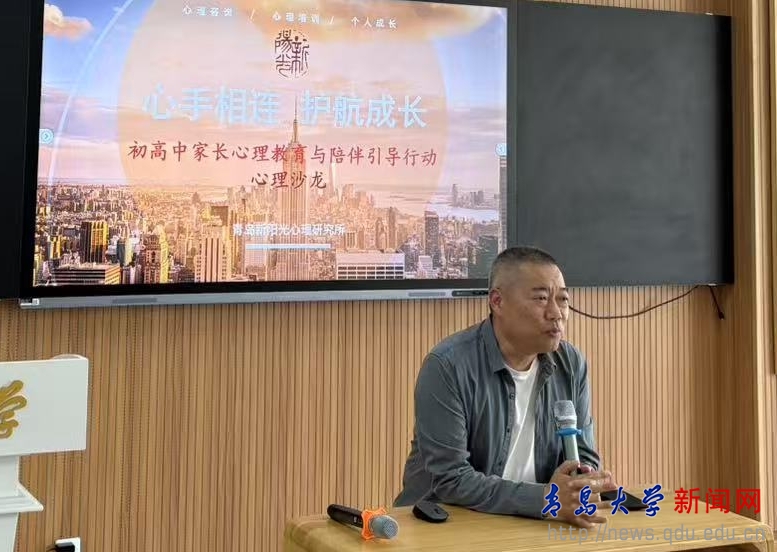 新闻网讯 5月21日下午,由校工会、妇委会主办的“心手相牵,护航成长——初高中家长心理教育与陪伴引导行动”心理沙龙在浮山书院大音堂(文化艺术楼C座306室)顺利举行。活动由校工会副主席戚昕主持,特邀青岛市心理咨询师协会秘书长、资深心理专家李克富教授担任主讲,鸭脖线上线下共百余位教工参加了活动。