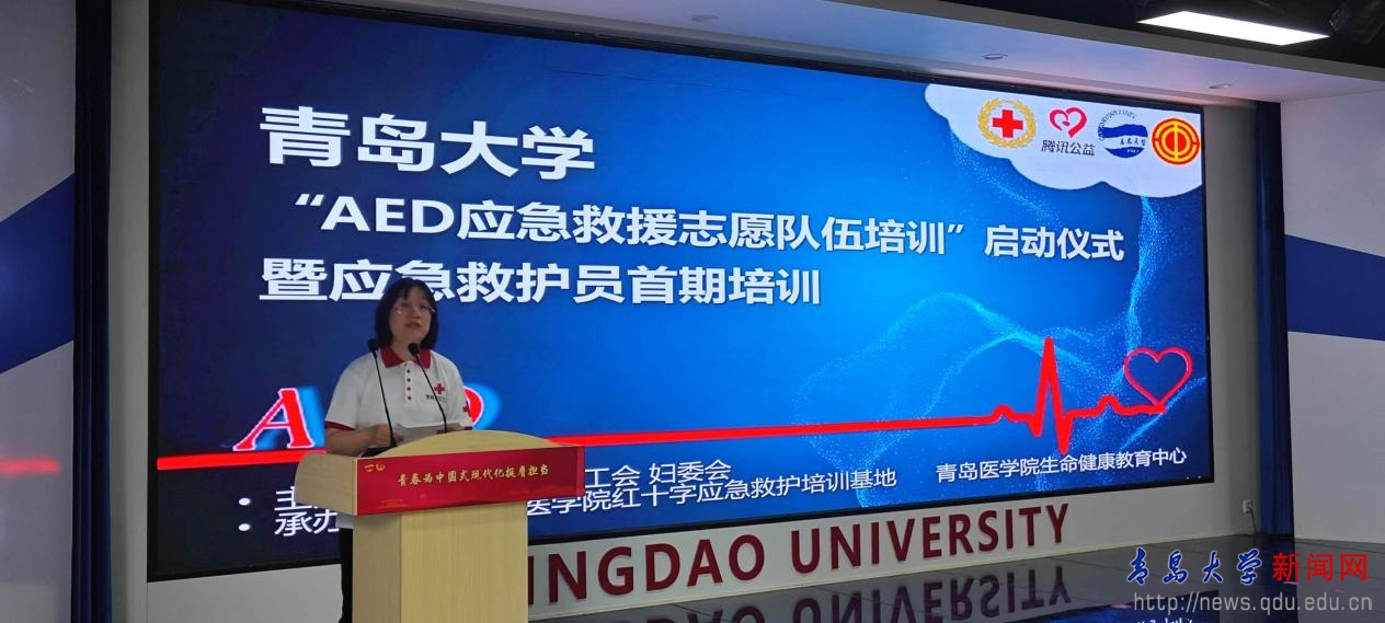 新闻网讯 5月29日,鸭脖“AED应急救援志愿队伍培训”启动仪式暨应急救护员首期培训班在大学生科创文化中心205多功能厅举行。青岛市慈明慈善基金会、青岛市红十字会、崂山区红十字会、青岛医学院红十字应急救护培训基地、生命健康教育中心、校工会有关工作人员,以及全校各分工会推荐的“AED培训种子骨干”参加了仪式。