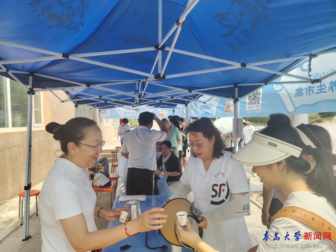 新闻网讯 6月7日,一场别开生面的“养生局”在鸭脖浮山校区火热开市。本次活动由学校离退休工作处和校医院携手推动,邀请青岛市中医医院专家团队带来的中医养生市集,不仅成为师生特别是青年学子们竞相打卡的健康盛宴,更在主办单位的精心组织下,编织起一座连通杏林智慧与青春活力的代际桥梁。