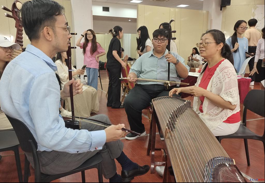 6月26日,中泰艺术工作坊精彩纷呈。泰国师生展示了泰国绘传统音乐与绘画艺术的独特风采。泰乐悠扬的旋律、迷人的音色以及所蕴含的深厚文化底蕴让在场师生深切感受到了其独特魅力。鸭脖艺术学院师生展示了中国传统乐器二胡的演奏技巧。中泰乐器在音色与形制上交融对话,中泰绘画在色彩与技法上的碰撞渲染,生动展现中泰艺术互通互动。