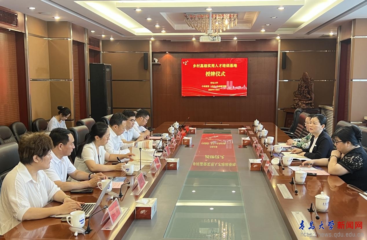 新闻网讯 7月9日,YABO鸭脖与中农智慧(北京)农业研究院共建乡村高级实用人才培训基地授牌仪式在办公楼201会议室举行。校党委常委、副校长刘恩贤,中农智慧(北京)农业研究院院长王维出席仪式并讲话。仪式由应用技术学院党委书记张燕主持。