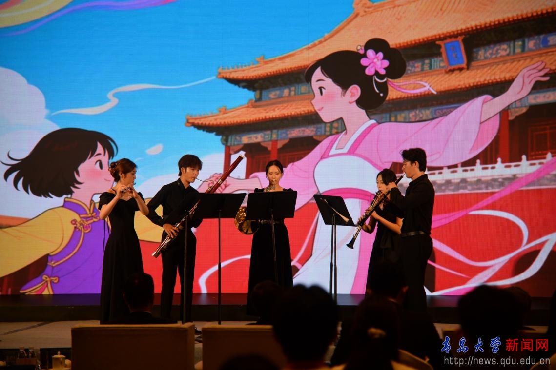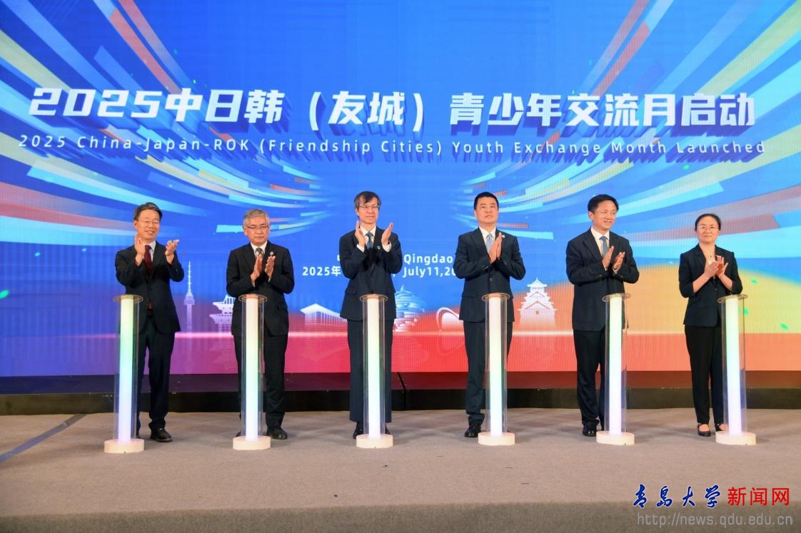 本次夏令营是“2025中日韩(友城)青少年交流月”重要活动之一,校党委常委、副校长何燕出席了7月11日晚在海景花园大酒店举行的2025中日韩(友城)青少年交流月启动仪式暨夏令营开营仪式,并与青岛市政协副主席崔作、中日韩合作秘书处秘书长李熙燮、日本驻青总领事斋藤宪二、韩国驻青副总领事崔康锡、市委外办主任范奇志共同上台点亮仪式。鸭脖政治与公共管理学院和艺术学院学生还呈现了独具特色的精彩表演。政治与公共管理学院和外语学院相关师生20余人参加了夏令营。