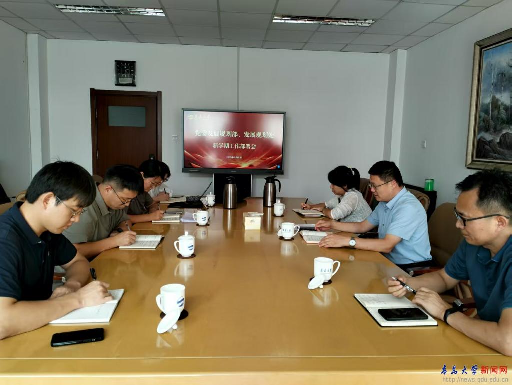 新闻网讯 9月9日下午,党委发展规划部、发展规划处在办公楼212会议室召开2025年秋季学期工作部署会。党委发展规划部部长、发展规划处处长马林刚主持会议,党委发展规划部副部长、发展规划处副处长王绪金、官慎蕙,规划科、信息科、项目科全体成员参加会议。