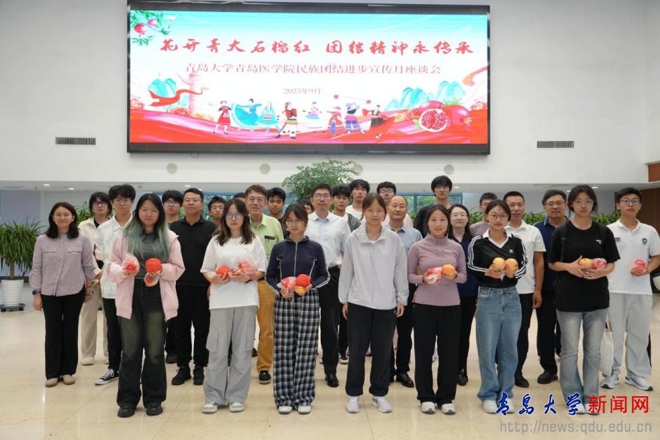 吴鹏在讲话中表示,在第十二个烈士纪念日与国庆、中秋双节交汇之际举办此次座谈会,具有特殊的纪念意义和时代内涵。他强调,今年山东省以“花开齐鲁石榴红,团结精神永传承”为主题开展第25个民族团结进步宣传月活动,是贯彻落实习近平总书记“各民族要像石榴籽一样紧紧抱在一起”重要指示精神的具体实践。他充分肯定了校友捐赠石榴所体现的“千房同蒂、千子如一”的象征意义,指出56个民族与台湾同胞同属中华民族,血脉相连、命运与共。吴鹏提出三点希望:一要铸牢中华民族共同体意识,做团结奋进的“同行者”;二要精进医学专业本领,做人民健康的“守护者”;三要传承红色基因,做家国情怀的“弘扬者”。