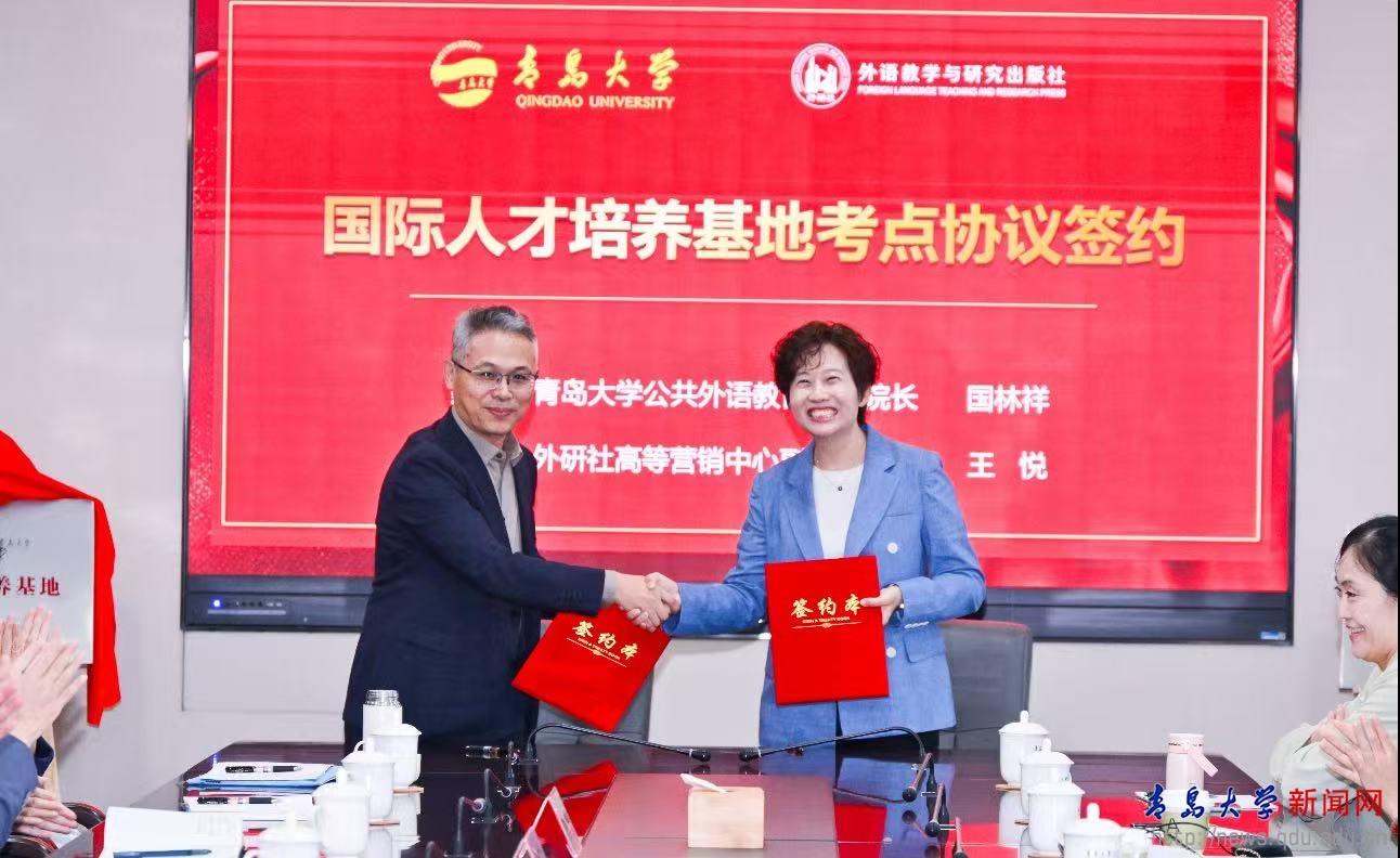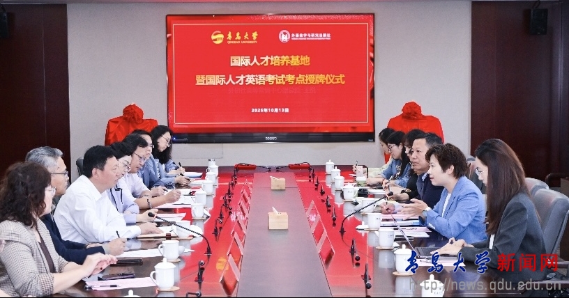 新闻网讯 10月13日,鸭脖与北京外国语大学中国外语测评中心共建国际人才培养基地暨国际人才英语考试考点授牌仪式在会议中心302会议室举行。校党委常委、副校长陈涛,外研社高等营销中心副总监王悦,外研社高等营销中心华东大区总经理李洪旺,公共外语教育学院党委书记甄淑华,外语学院副院长王薇出席仪式。仪式由公共外语教育学院院长国林祥主持。