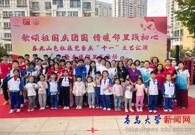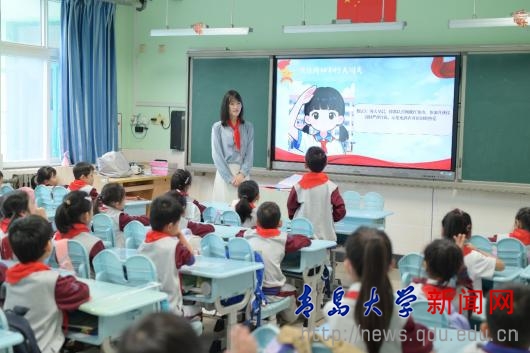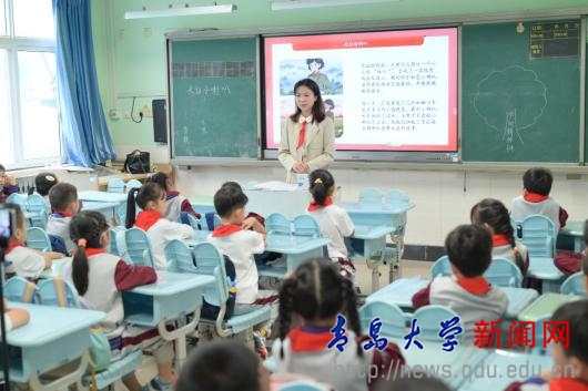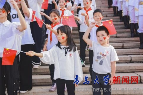 推进一体化建设,校地共建厚植家国情。马克思主义学院组织学生赴青岛市宁夏路第二小学,以“长征精神”为主题,为该校刚刚加入中国少年先锋队的同学们上一堂思政课,大学生们通过讲述长征故事、演绎红色情景剧、互动问答等形式,引导小学生深刻理解长征精神的时代内涵,让红色基因真正融入成长血脉。校团委举行“奋进强国路,阔步新征程”庆祝中华人民共和国成立76周年升国旗仪式,中国关工委健体中心“阳光下一代”、山东工作组直属德萌志愿服务中心志愿者、青岛二中分校志愿班级志愿者,及学校师生代表1200余人参加仪式。小学、初中、高中的学生志愿者与鸭脖学子共同站在一面旗帜下,在庄严肃穆的仪式中感受爱国精神的代际传承,在仪式中厚植家国情怀。