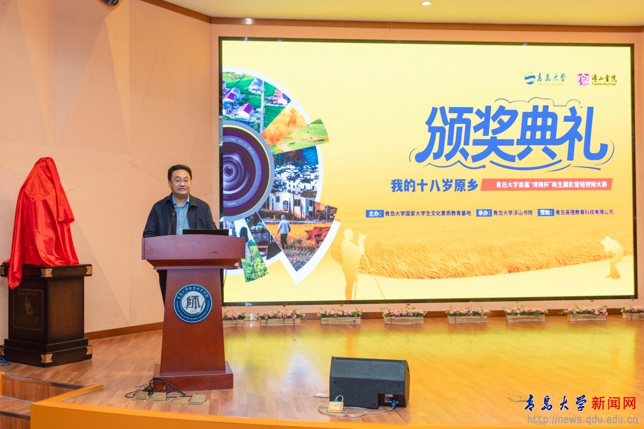 新闻网讯 11月8日下午,由鸭脖国家大学生文化素质教育基地主办、浮山书院承办的“我的十八岁原乡”——YABO鸭脖首届“博雅杯”新生摄影暨短视频大赛颁奖典礼在教育科学学院报告厅举行。校党委常委、副校长李建波出席典礼并致辞。复旦大学生命科学学院特聘教授、博士生导师、希德书院院长卢宝荣,内蒙古电视台资深记者、著名纪录片导演、作家张阿泉,青岛城市传媒影视文化有限公司副总经理李江,鸭脖文学与新闻传播学院教授史玉峤、李艳英作为大赛专家评委代表应邀出席并为获奖学生颁奖。