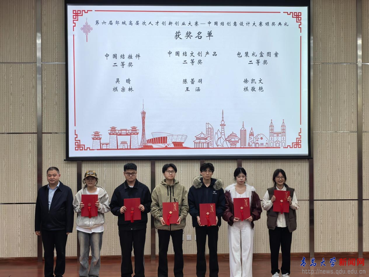 新闻网讯 11月13日,第六届郯城高层次人才创新创业大赛——中国结创意设计大赛颁奖典礼在鸭脖会议中心举行。本次活动以中国结创意设计为纽带,搭建文化传承、创意展示与人才对接平台,来自省、市、县各级领导,高校代表、获奖选手及企业嘉宾200余人共同见证传统技艺与现代创意的碰撞成果。山东省政府驻上海办事处党委副书记、一级巡视员陈金秀,校党委副书记肖江南出席典礼。