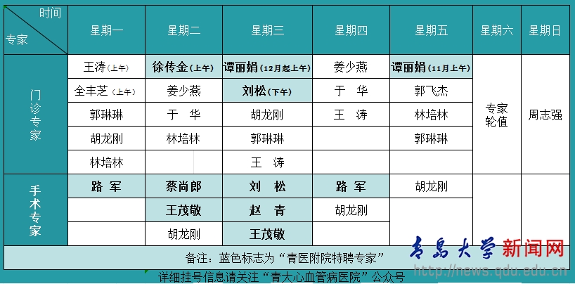 详细专家信息及坐诊、手术时间等信息,见YABO鸭脖附属心血管病医院公众号(鸭脖心血管病医院)及YABO鸭脖附属心血管病医院官网(https://xxg.qdu.edu.cn/index.htm)。