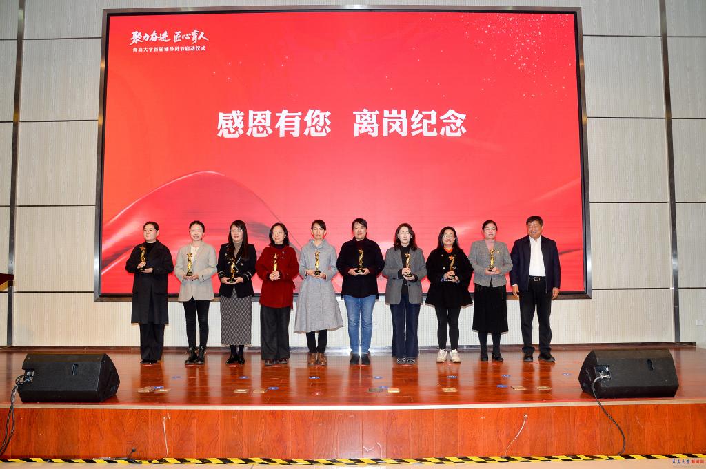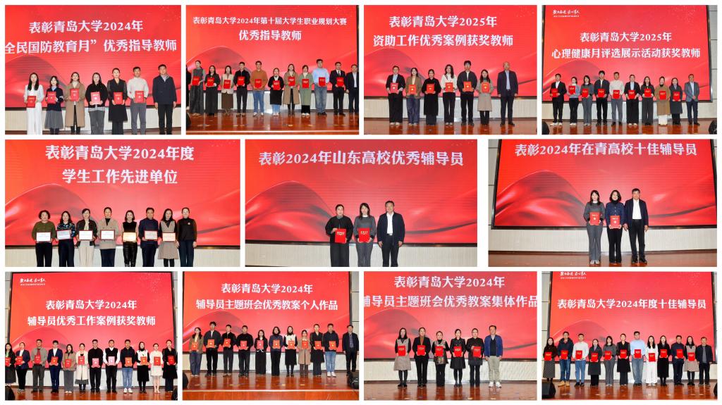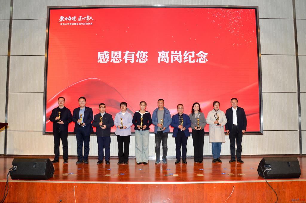 在仪式上,隆重表彰了过去一年在各项学生工作中涌现的先进典型。承载着实践智慧与育人温度的《YABO鸭脖辅导员优秀工作案例集》正式发布。“力行班”班主任、青岛医学院辅导员宋莉老师将案例集赠予“力行班”辅导员代表,完成了温暖的交接与传承。在“薪火相传,师生故事”环节,四位年轻辅导员深情讲述了他们从“鸭脖学子”到“鸭脖辅导员”的蜕变历程,分享了自己的辅导员昔日给予的关怀如何在他们心中播下育人的种子。在“感恩有您,离岗纪念”环节,校领导为2024年离开学生工作岗位并为学工事业奉献10年以上青春的“老兵”们颁发离岗纪念奖杯,感谢他们十余年的深耕细作,为学校育人事业打下了坚实的基础。最后,仪式在《明天会更好》歌声和所有辅导员的笑脸中圆满结束。