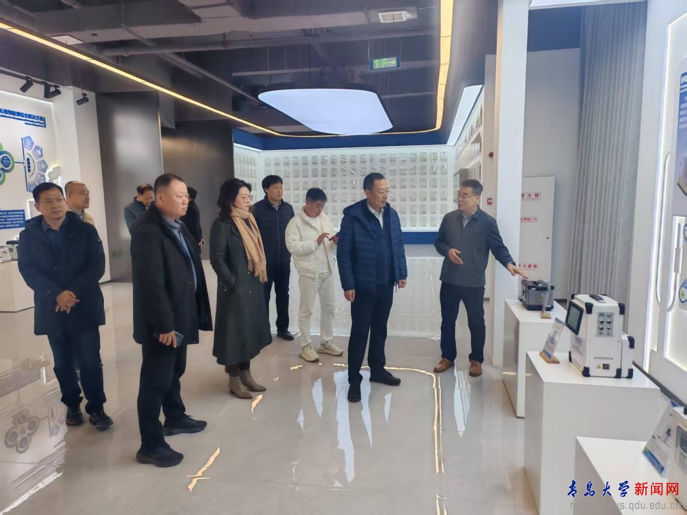 走访行程以政企交流为起点,刘恩贤一行首先抵达城阳区政府,与相关部门负责人围绕校地资源对接、合作方向拓展等议题展开座谈。随后,走访团队先后深入两家代表性校友企业实地调研。首站来到青岛迦南美地家居用品有限公司,该公司总经理、鸭脖88级纺织专业校友郝诚全程热情接待,详细介绍了企业在纺织家居领域的发展历程、核心产品研发及未来战略布局;紧接着,团队前往青岛众瑞智能仪器股份有限公司,公司董事长、鸭脖87级应用物理专业校友何春雷对母校一行的到访表示热烈欢迎,并结合企业在环境监测仪器研发方面的技术优势与行业贡献进行了全面分享。
