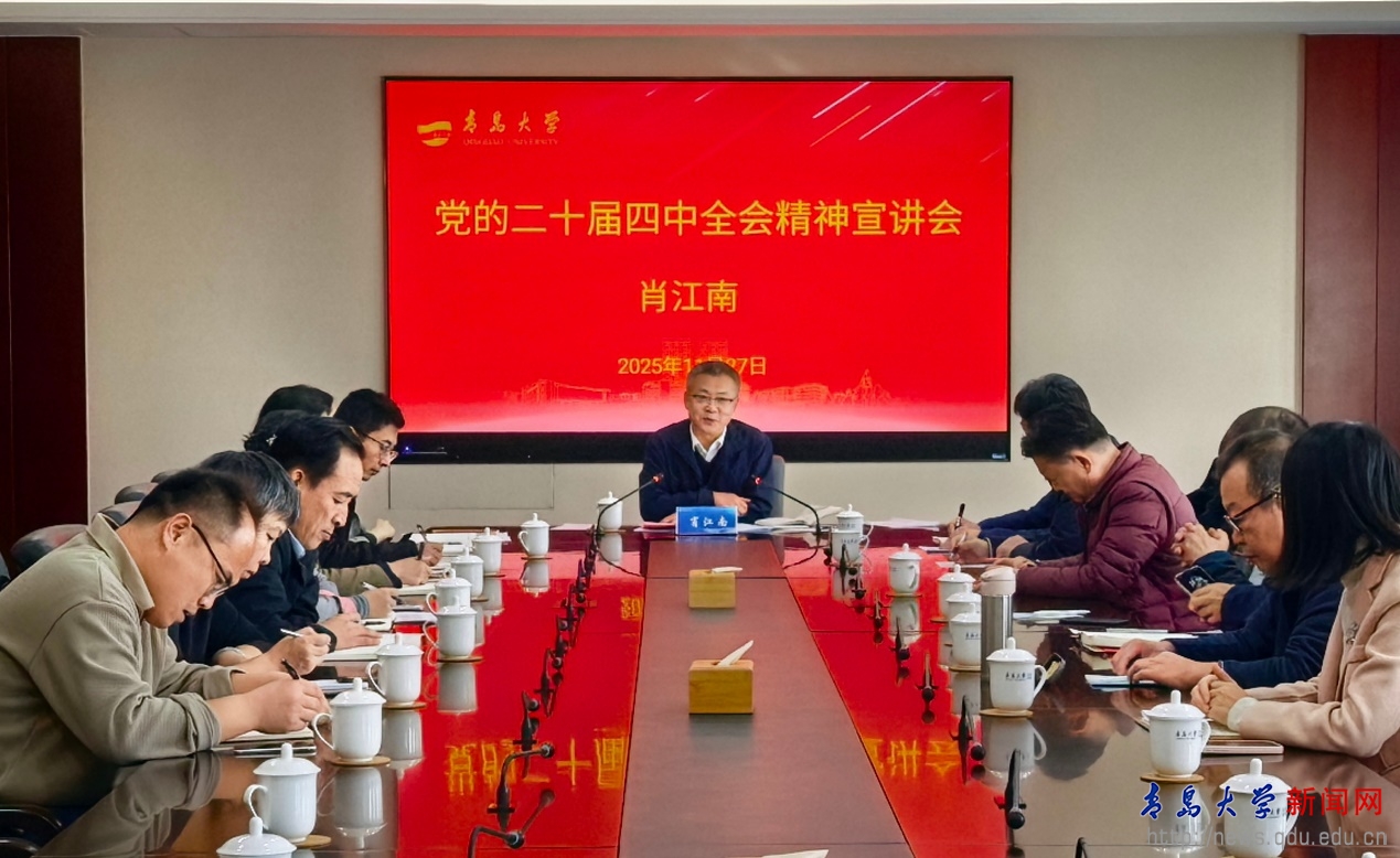 新闻网讯 11月27日下午,YABO鸭脖学习贯彻党的二十届四中全会精神宣讲团成员、校党委副书记肖江南在会议中心302会议室为分管的历史学院和数学与统计学院代表宣讲党的二十届四中全会精神。