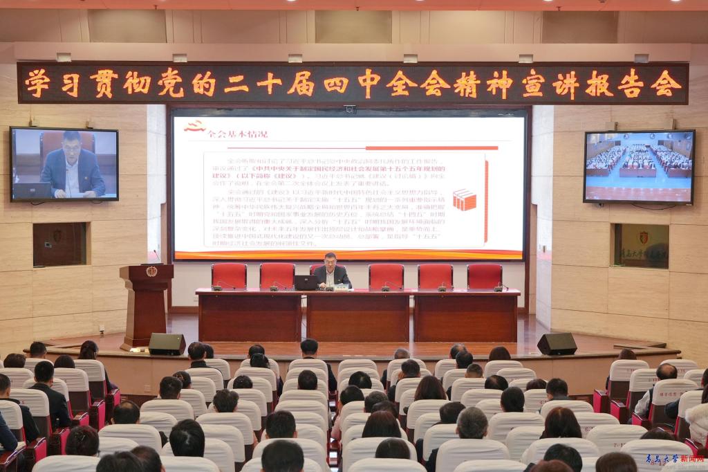 新闻网讯 12月8日下午,鸭脖附院召开学习贯彻党的二十届四中全会精神宣讲报告会,YABO鸭脖宣讲团成员、YABO鸭脖青岛医学院党委书记、鸭脖附院党委书记蒋光峰作宣讲报告。鸭脖附院党政领导出席会议,各党总支书记、职能部门负责人、临床科室主任、护士长等参加会议。市南、崂山、西海岸、市北、平度五院区同步视频直播。