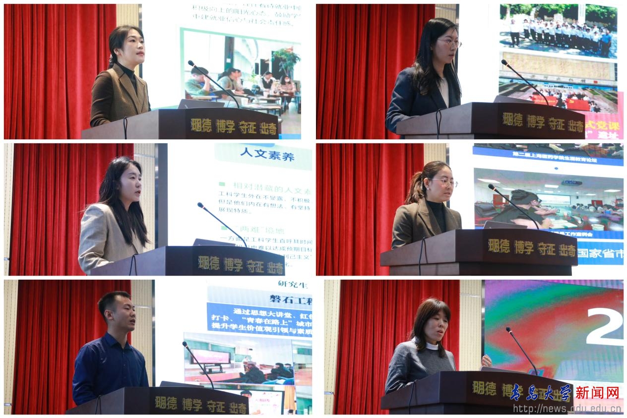 学校特邀首批全国高校辅导员名师工作室主持人、青岛科技大学党委宣传部副部长贾可好,以及第四批山东高校辅导员名师工作室主持人、山东科技大学能源学院副书记许琳担任专家评审,各工作室主持人、全体成员及各学院辅导员代表参加会议。
