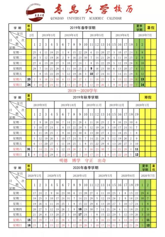 2019-2020学年校历发布