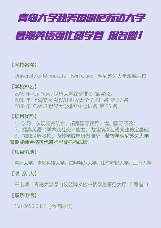 3、接触世界名校,为转学或申研做准备;若转学明尼苏达大学,暑期成绩合格可代替雅思或托福成绩。